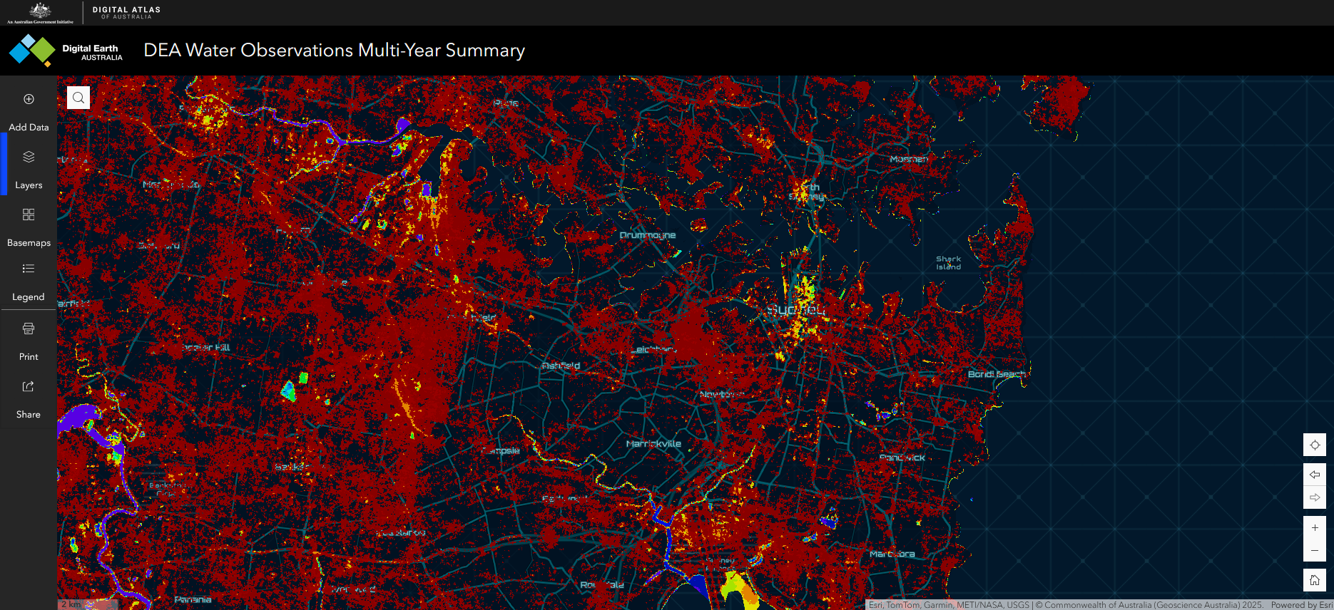 A closeup of Sydney in the Data Down Under Application